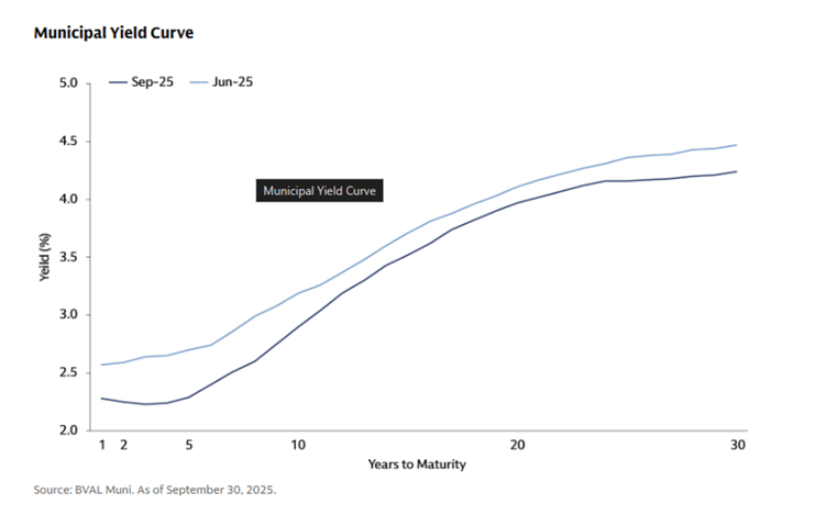 Over the past year, the relative attractiveness of municipal bonds has improved meaningfully. The municipal yield curve has steepened, offering better compensation for extending maturities, while the ratio of municipal yields to comparable U.S. Treasury yields has risen above long-term averages.